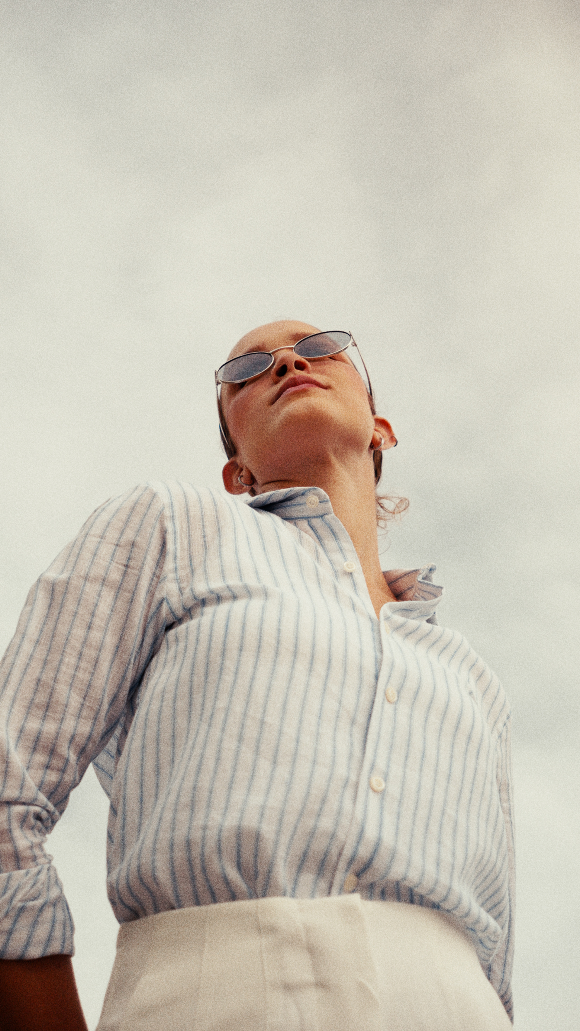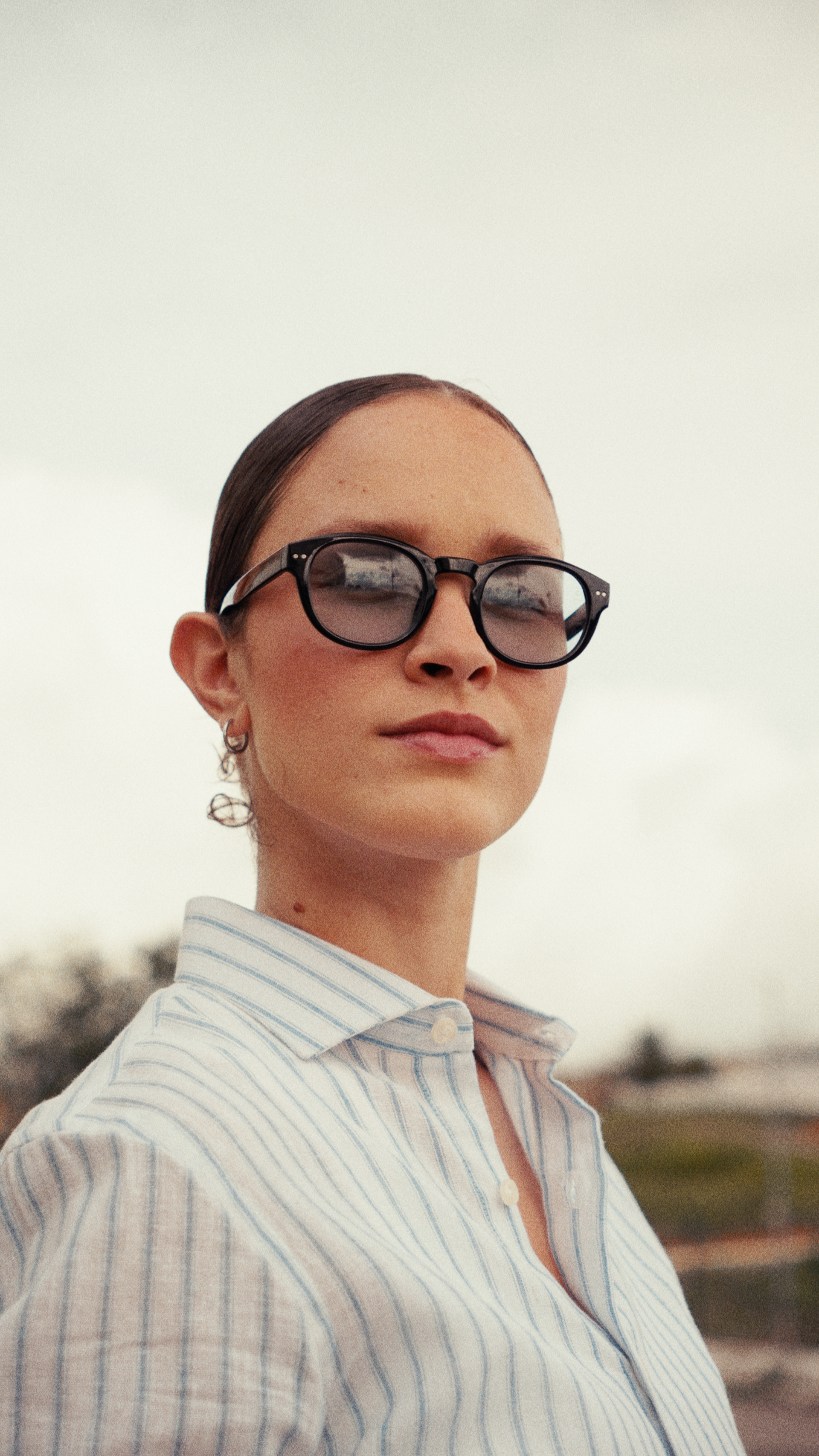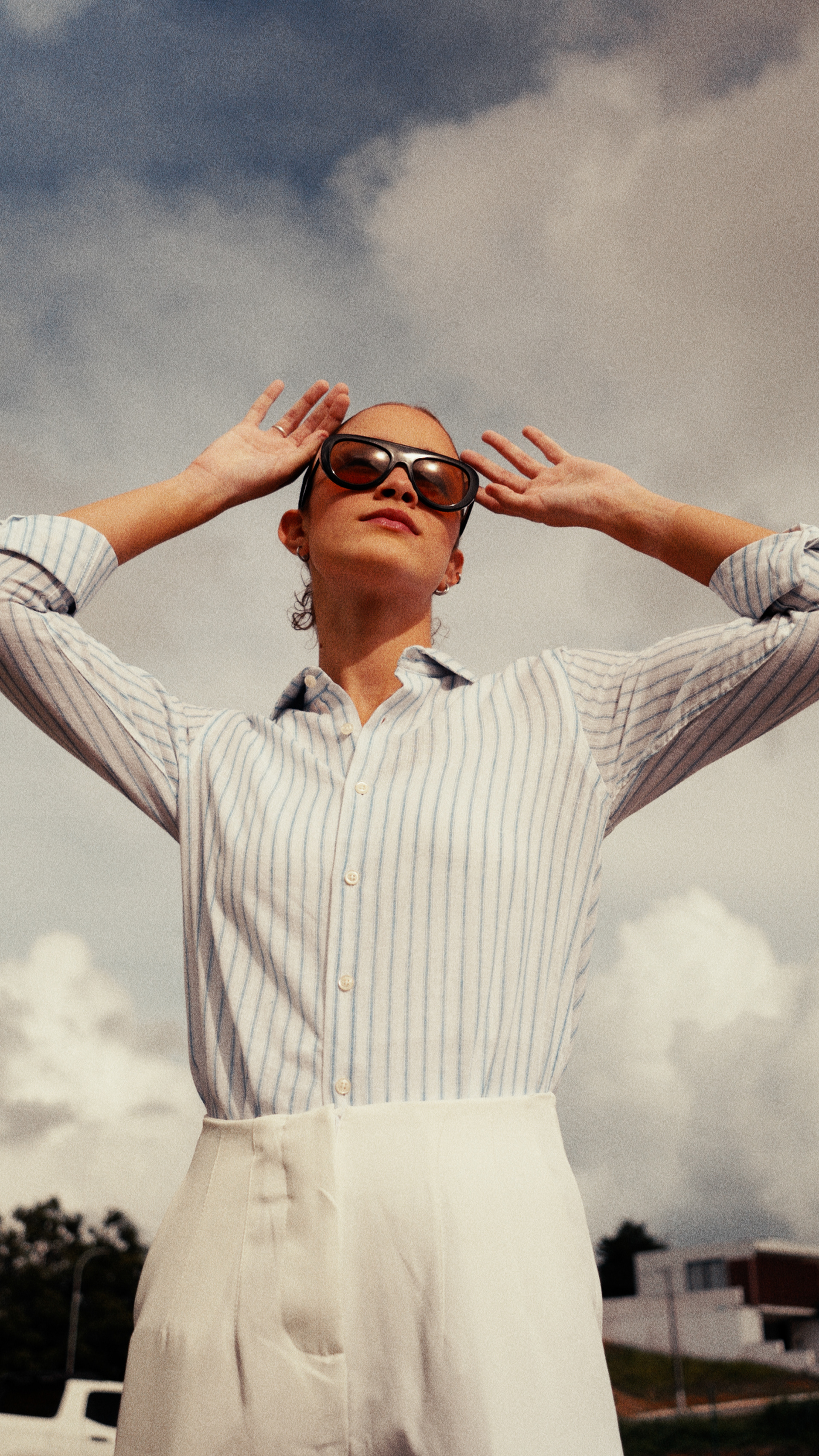 O projeto explora o contraste entre o minimalismo do quiet luxury e a presença marcante dos óculos, criando uma narrativa visual baseada em equilíbrio, forma e identidade.