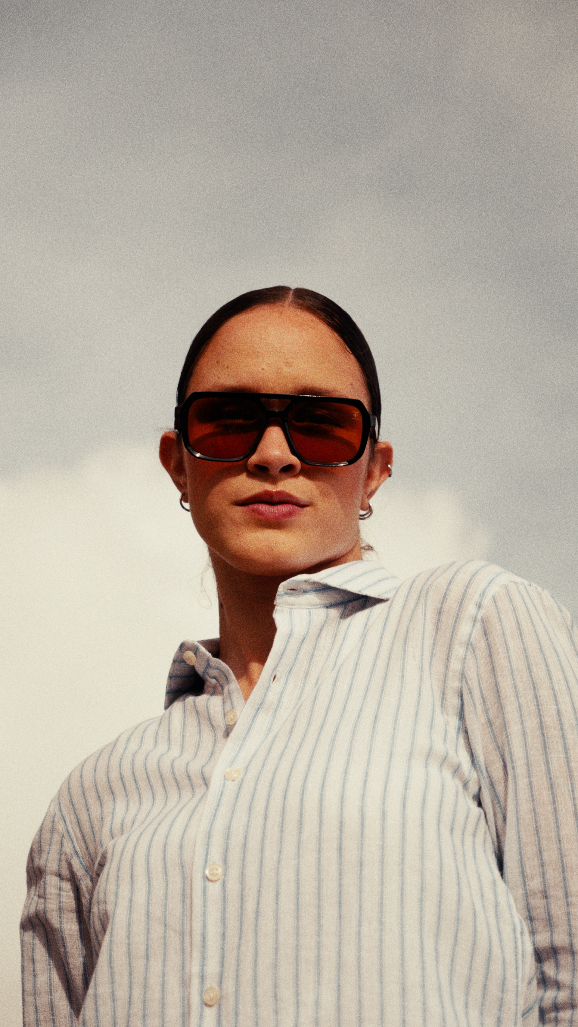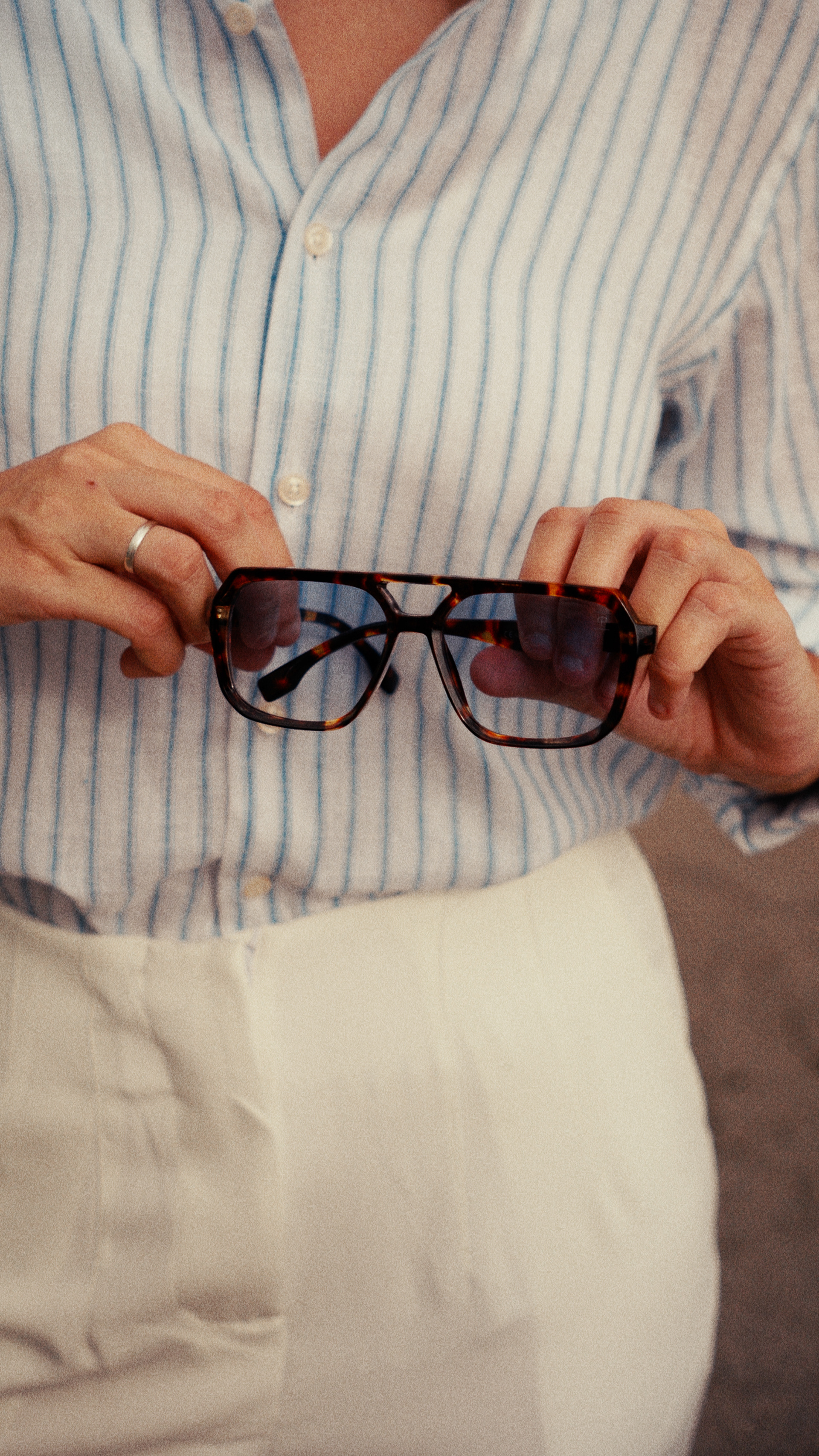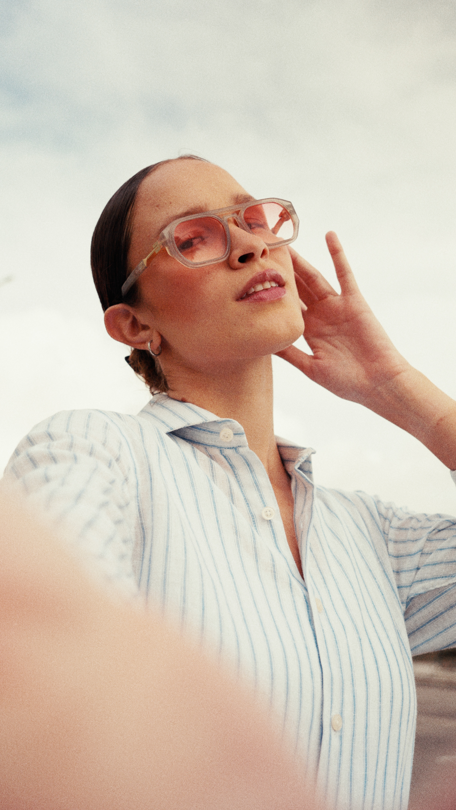 O projeto explora o contraste entre o minimalismo do quiet luxury e a presença marcante dos óculos, criando uma narrativa visual baseada em equilíbrio, forma e identidade.